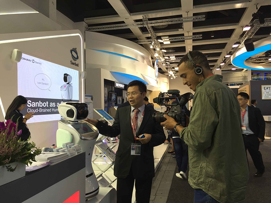 此次参加IFA展会,三宝平台机器人可谓是"有备而来",引得现场参观者频频驻足观看,媒体争相采访报道。截至目前Reuters、CNN 、BBC、 BR 、SkyTV、 德国电视台等多家主流媒体仍在持续采访中。